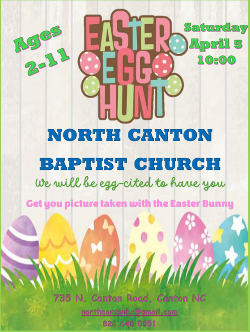On Saturday, April 5th @ North Canton Baptist we are hosting our Annual GIANT Easter Egg Hunt...